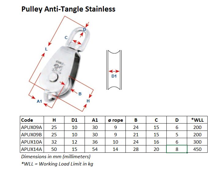 Cuerpo y polea inoxidables, casquillo de bronce